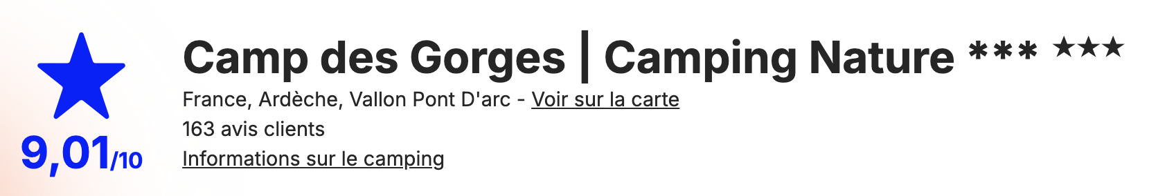 Le Camp Des Gorges, notre camping dans les Gorges de l’Ardèche sera votre écrin de nature 3 étoiles niché au cœur de paysages spectaculaires. Idéalement situé en bord de rivière et à seulement 5 minutes de Vallon Pont d’Arc, nous proposons un total de 100 hébergements dont 78 emplacements nus, 3 cabanons sans sanitaires, 10 mobil-homes et 9 chalets pour une escapade naturelle inoubliable.